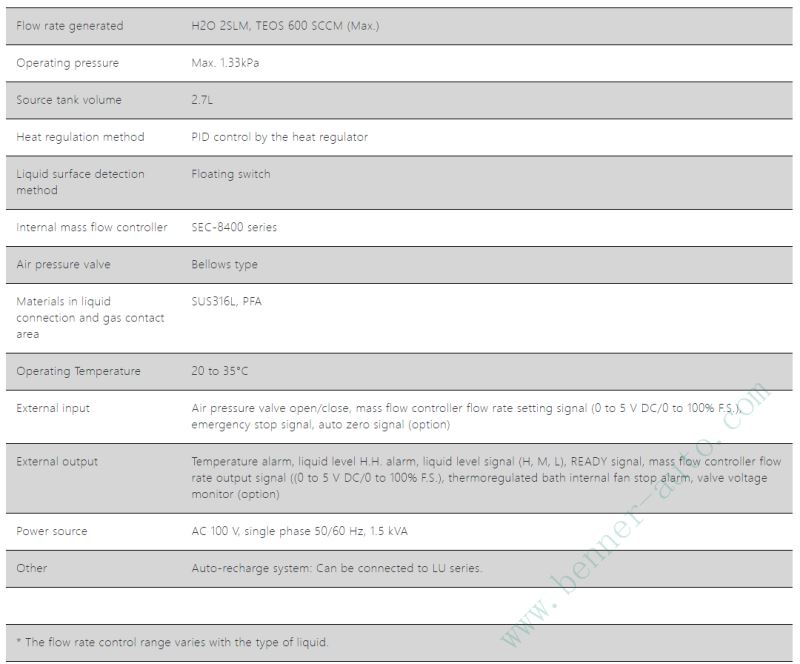 • LSC-A100 提供 TEOS 600SCCM 和 H2O 2SLM 等材料的穩定氣化